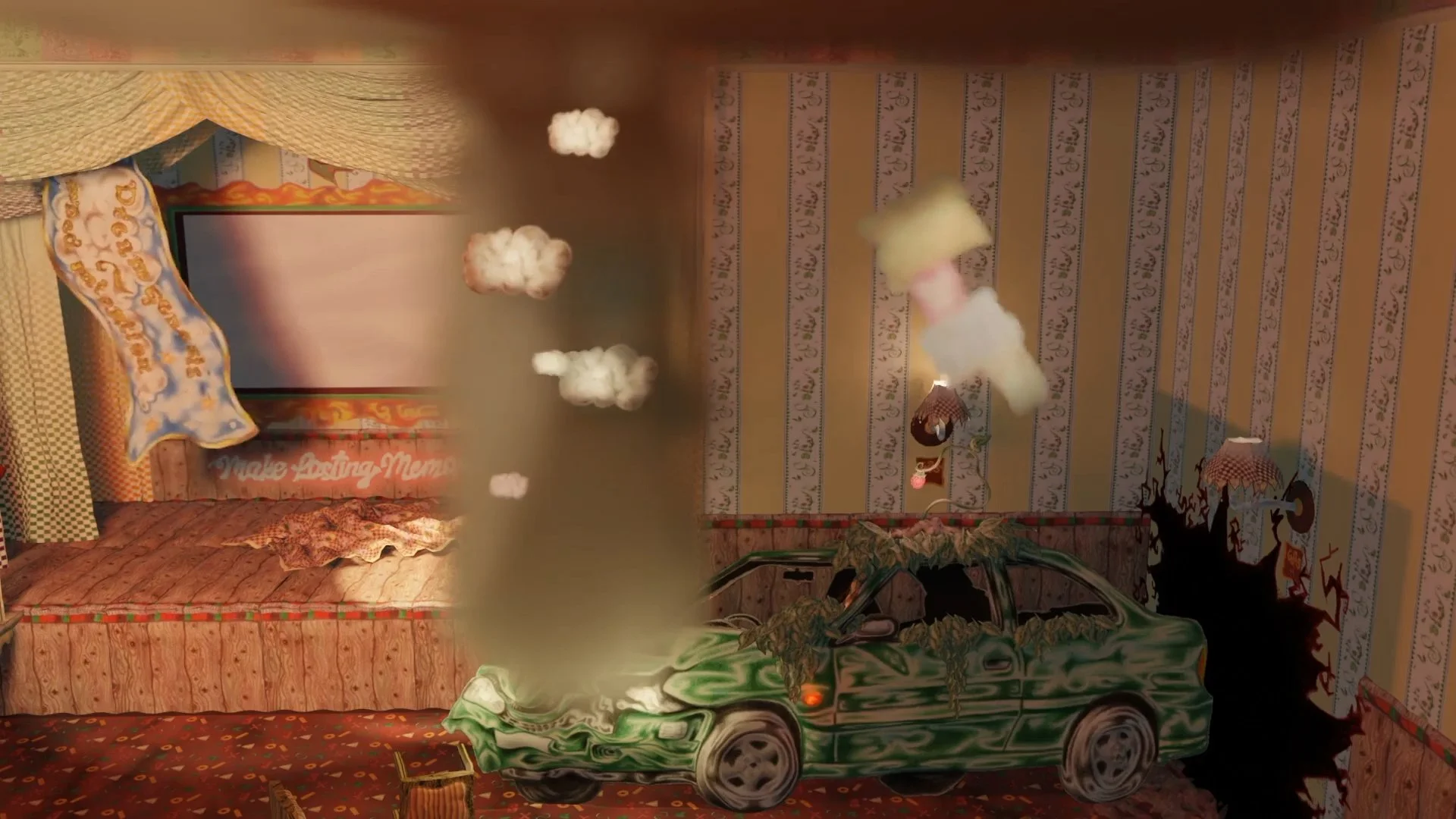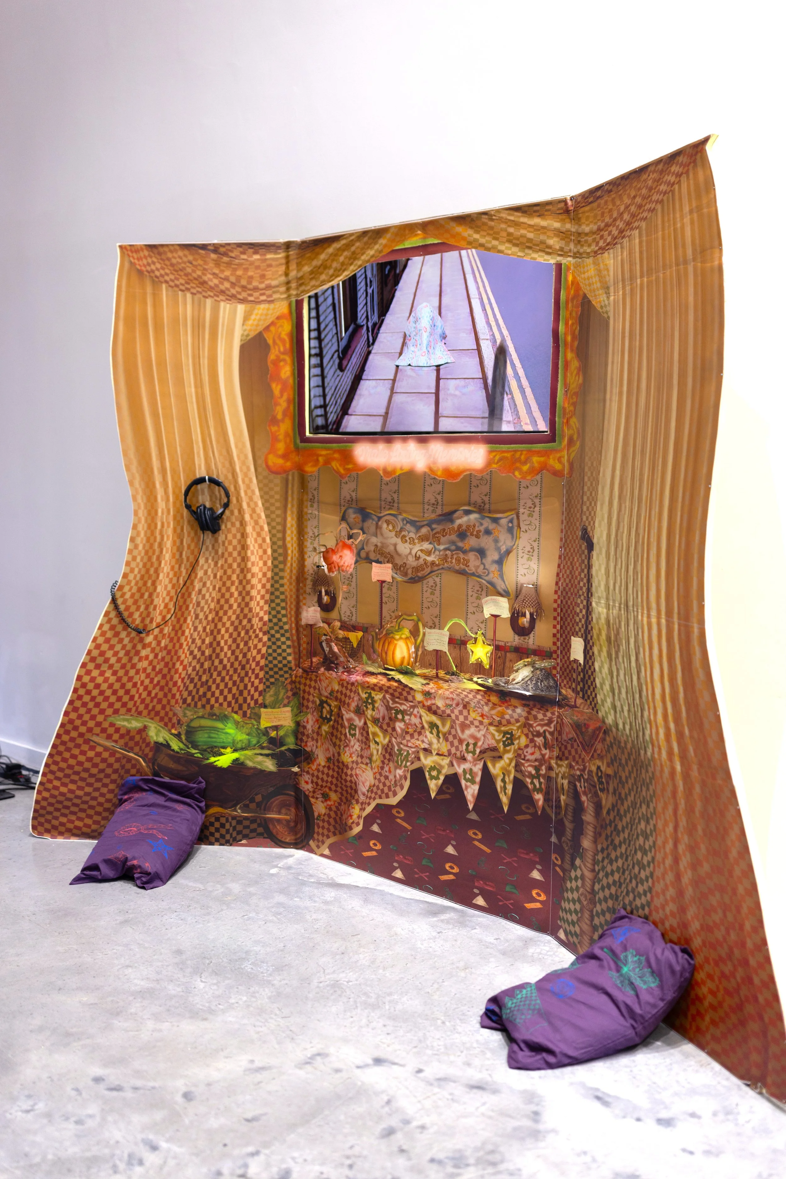 Digitally collaging & re-sculpting handcrafted coloured-pencil works within 3D software to create environments, objects and costumes - ‘Conduits’ considers the tenuous nature of memory, collective thought and mental solitude, depicting experience in unexpected and familiar forms.