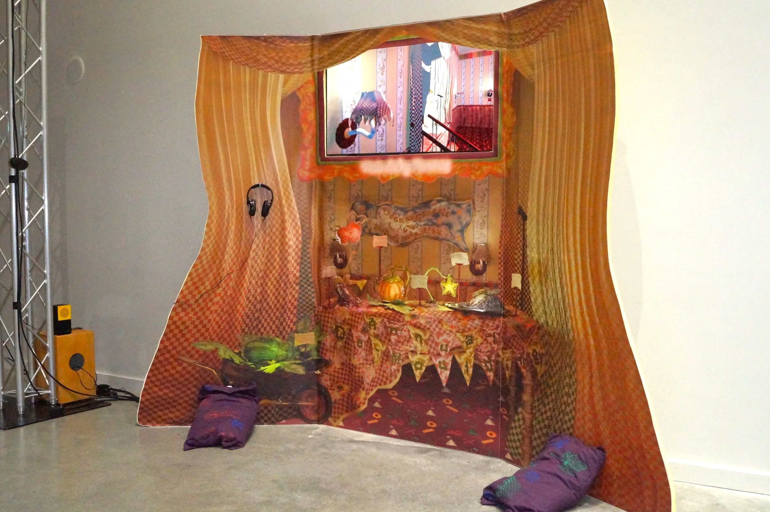 A triple booked Conference Hall leads to three speakers attempting to engage a disparate audience in their own topic - ‘The Reverie’ Illustrates their belief in the importance of giving dreams a title card, ‘The Judge’ hosts a local vegetable moulding competition, and ‘The Director’ aims to recruit and train new members into an ‘experience’ based marketing scheme.