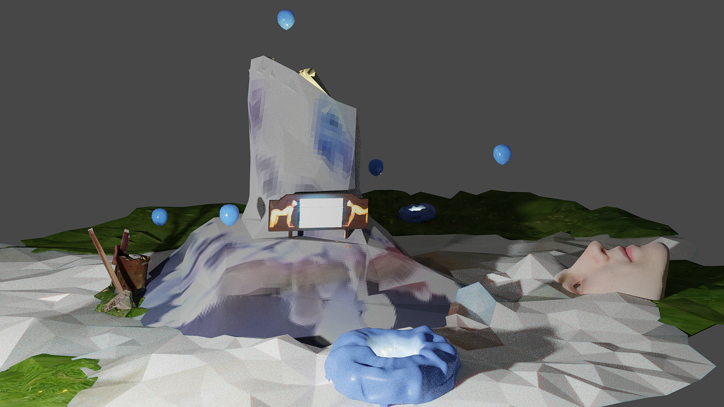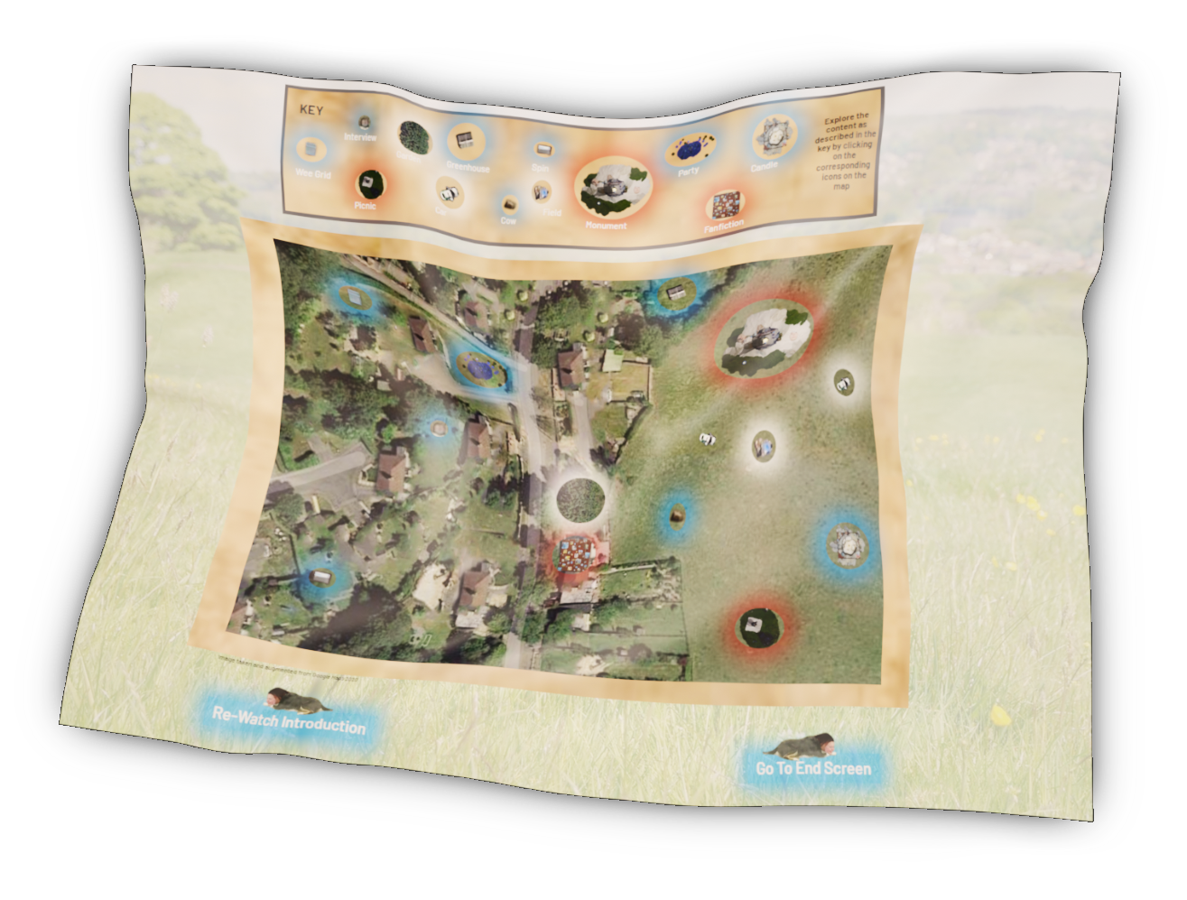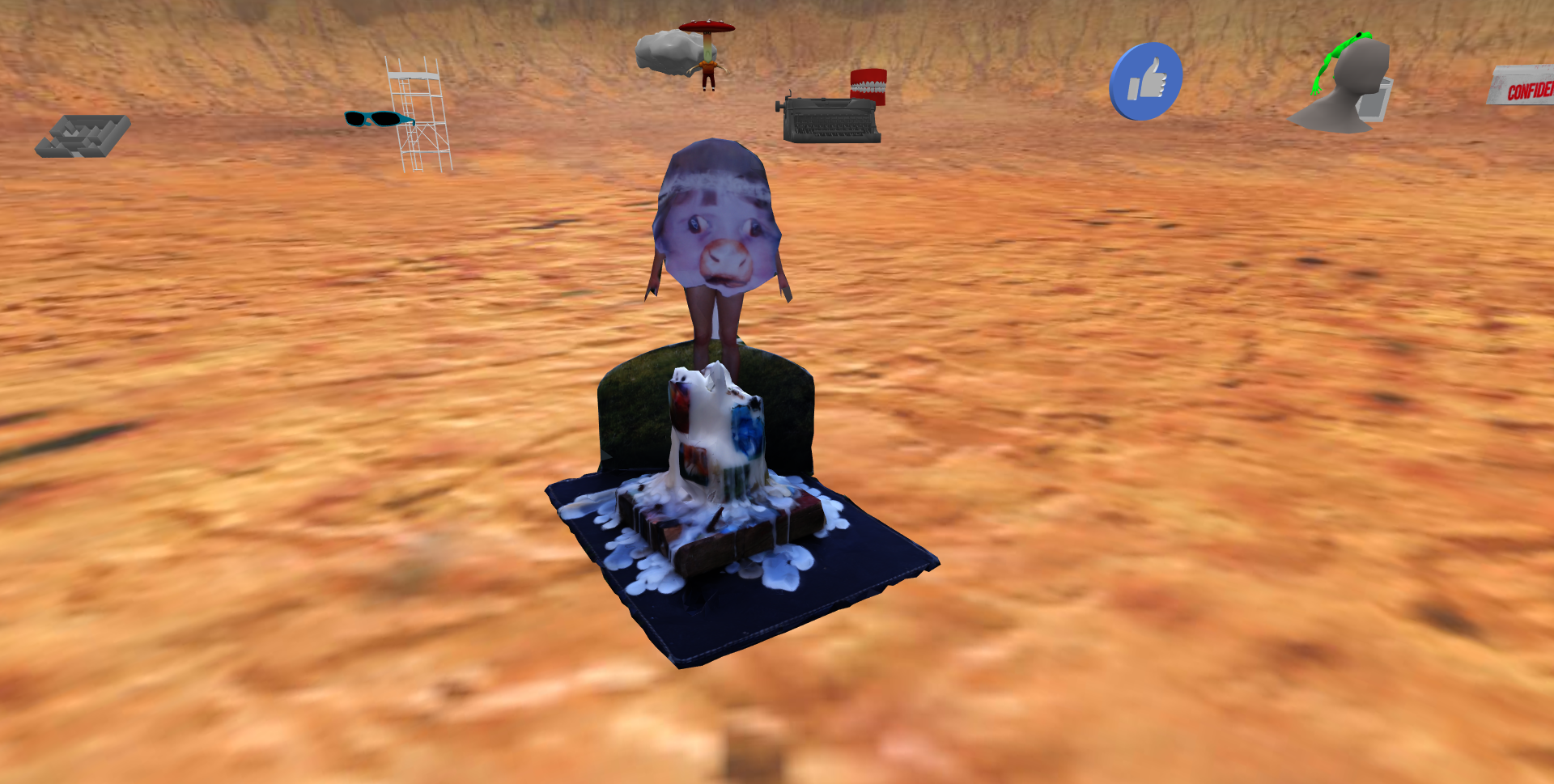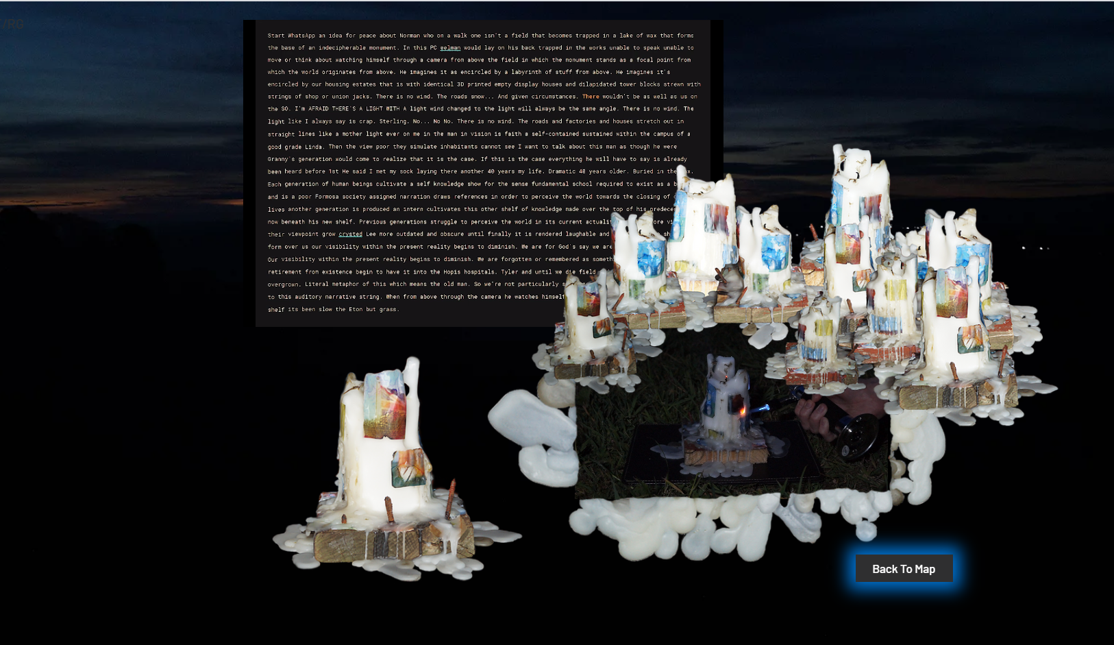 With a combinative structure of re-imagined exhibition scenes, magical-realist reviews, 360° spaces, and 3D renderings of fictional monuments, the narrative utilized a treasure-hunt-style format and icons and characters as navigational tools.